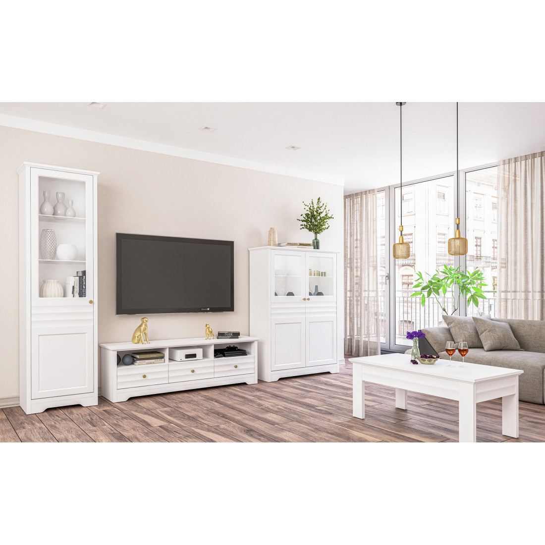 Денвер – это новая коллекция корпусной мебели для спальни, гостиной и столовой. Прямые строгие линии в сочетании с легкой горизонтальной волной на фасадах придают мебели элегантный и уверенный вид. Белый матовый цвет мебели, любимый многими за универсальность, можно сочетать с любым оттенком стен и пола. Округлые металлические золотые ручки разбавляют строгий и лаконичный вид фасадов и добавляют интерьеру утонченности.