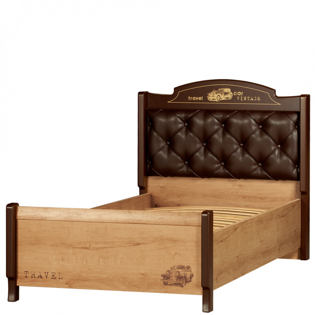 Корпус: ДСП, декор – дуб ридинг. Основание кровати – ламели