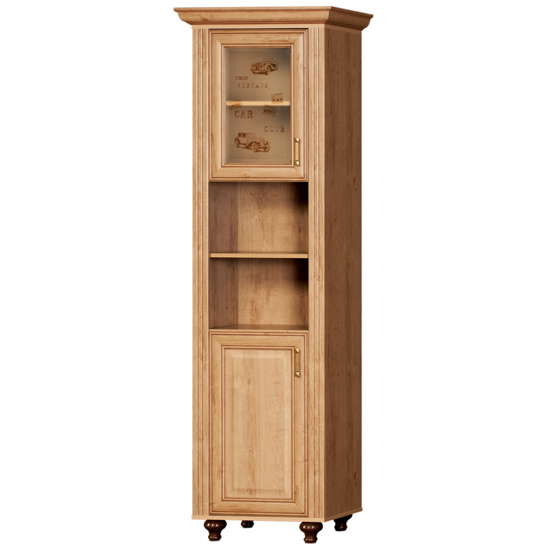 Фасады: МДФ, декор – дуб ридинг, рисунок, патина, стекло с фацетом и рисунком, зеркало